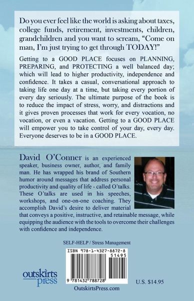 Do you ever feel like the world is asking about taxes, college funds, retirement, investments, children, grandchildren and you want to scream, "Come on man, I am just trying to get through TODAY!" Getting to a GOOD PLACE focuses on PLANNING, PREPARATION, and PROTECTING a well balanced day; which will lead to higher productivity, independence and confidence. This book is the written version of speeches and workshops that have been presented to groups of all sizes across the United States in efforts to increase personal productivity. Getting to a GOOD PLACE takes a casual, conversational approach to taking life one day at a time, but taking every portion of every day seriously. The ultimate purpose of the book is to reduce the impact of stress, worry, and distractions (SWD's) on your well planned day. It designed for every vocation, no vocation, or even a vacation. Whether at home, work, or play; by following the repeatable processes, you will develop a path that will give you the best chance of being at your best more often. Planning Learn how to use the Productivity Matrix, check for a balanced day, and get the most out of your day with the Three Block System. Preparation Learn the importance of preparation for stress reduction, how to add the "lagniappe" to make things extra special, capitalize on strengths while overcoming weaknesses, and hold it all together with humor. Protection Learn the destructive nature of Stress, Worry, and Distraction (SWDs) and how to protect your day from them. Learn to recognize SWDs early and use a repeatable formula for reducing their impact on your well planned day. For the new or seasoned sales person, that person starting a home based business, or anyone that wants to get the most out of every day without the destructive forces of stress, worry, and distraction; Getting to a GOOD PLACE will empower you to take control of your day, every day.