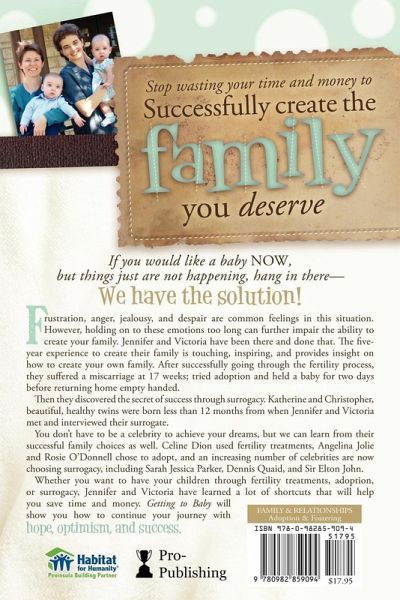 Creating a family in the 21st Century presents certain challenges: career couples are waiting longer and discovering infertility issues and gay & lesbian couples are becoming parents through various methods. The authors share their 5 year story, struggles, and success of creating a family. This book is designed to aide others who are going through the process of creating a child through alternative means, with a specific intent of providing short cuts in time, emotions, and money.