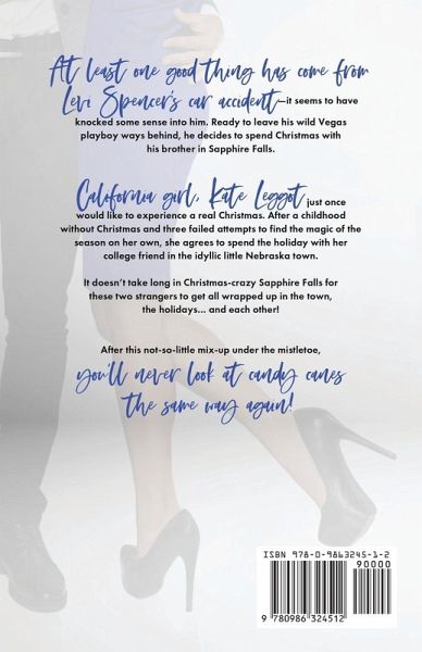At least one good thing has come from Levi Spencer's car accident-- it seems to have knocked some sense into him. Ready to leave his wild Vegas playboy ways behind, he decides to spend Christmas with his brother in Sapphire Falls. California girl, Kate Leggot just once would like to experience a real Christmas. After a childhood without Christmas and three failed attempts to find the magic of the season on her own, she agrees to spend the holiday with her college friend in the idyllic little Nebraska town. It doesn’t take long in Christmas-crazy Sapphire Falls for these two strangers to get all wrapped up in the town, the holidays… and each other! After this not-so-little mix-up under the mistletoe, you’ll never look at candy canes the same way again!
