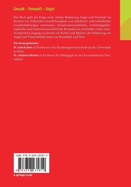 Das Buch geht der Frage nach, welche Bedeutung Angst und Vernunft im Kontext von kultureller Gewaltförmigkeit und subjektiver unterschiedlicher Gewalterfahrungen zukommen. Sozialwissenschaftliche, erziehungsphilosophische und kulturwissenschaftliche Perspektiven erschließen einen interdisziplinären Zugang zu Gewalt von Kultur und Medien, der Erfahrung von Angst und Vulnerabilität sowie von Fremdheit und Wut.