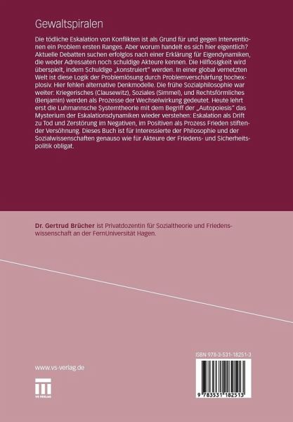 Die tödliche Eskalation von Konflikten ist als Grund für und gegen Interventionen ein Problem ersten Ranges. Aber worum handelt es sich hier eigentlich? Aktuelle Debatten suchen erfolglos nach einer Erklärung für Eigendynamiken, die weder Adressaten noch schuldige Akteure kennen. Die Hilflosigkeit wird überspielt, indem Schuldige "konstruiert" werden. In einer global vernetzten Welt ist diese Logik der Problemlösung durch Problemverschärfung hochexplosiv. Hier fehlen alternative Denkmodelle. Die frühe Sozialphilosophie war weiter: Kriegerisches (Clausewitz), Soziales (Simmel) und Rechtsförmliches (Benjamin) werden als Prozesse der Wechselwirkung gedeutet. Heute lehrt erst die Luhmannsche Systemtheorie mit dem Begriff der "Autopoiesis" das Mysterium der Eskalationsdynamiken wieder verstehen: Eskalation als Drift zu Tod und Zerstörung im Negativen, im Positiven als Prozess Frieden stiftender Versöhnung. Dieses Buch ist für Interessierte der Philosophie und der Sozialwissenschaften genauso wie für Akteure der Friedens- und Sicherheitspolitik obligat.