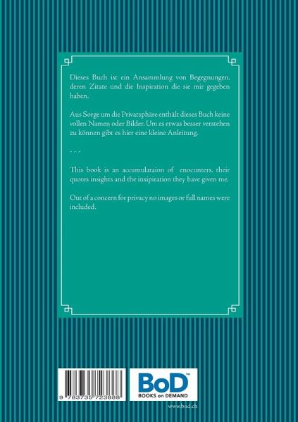 Um diese Buch etwas besser verstehen zu können, gibt es hier eine kleine Anleitung.Auf der linken Seite das deutsche Gedicht. Auf der Rechten Seite das englische Gedicht.Zitate, die mich inspiriert haben, sind in Kursiv geschrieben.Das Original ist in dunkler Schrift und die übersetzte Version in grauer Schrift. Da ich abwechselnd Deutsch und Englisch schreibe, war diese Übersetzung notwendig. - - -To understand this book a bit better I give you a little How-To.On the left side the German poem.On the right side the English poem.Quotations that inspired me are written in Italics. The Original in black and the translation in gray. Since I often switch between German and English while writing these translations were necessary.