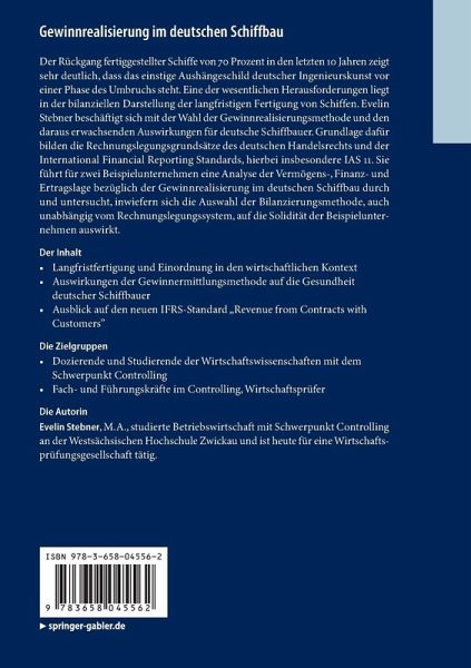Der Rückgang fertiggestellter Schiffe von 70 Prozent in den letzten 10 Jahren zeigt sehr deutlich, dass das einstige Aushängeschild deutscher Ingenieurskunst vor einer Phase des Umbruchs steht. Eine der wesentlichen Herausforderungen liegt in der bilanziellen Darstellung der langfristigen Fertigung von Schiffen. Evelin Stebner beschäftigt sich mit der Wahl der Gewinnrealisierungsmethode und den daraus erwachsenden Auswirkungen für deutsche Schiffbauer. Grundlage dafür bilden die Rechnungslegungsgrundsätze des deutschen Handelsrechts und der International Financial Reporting Standards, hierbei insbesondere IAS 11. Sie führt für zwei Beispielunternehmen eine Analyse der Vermögens-, Finanz- und Ertragslage bezüglich der Gewinnrealisierung im deutschen Schiffbau durch und untersucht, inwiefern sich die Auswahl der Bilanzierungsmethode, auch unabhängig des Rechnungslegungssystems, auf die Solidität der Beispielunternehmen auswirkt.