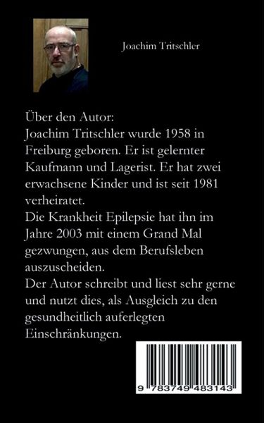 Mein Leben mit EpilepsieEs beginnt in frühester Kindheit, als medizinische Fachkenntnisse noch fehlten und wirksame Medikamente Mangelware waren.Das Buch beschreibt, wie diese Krankheit Höhen und Tiefen des Lebens immer wieder beeinflusst und extreme Auswirkung auf Charakterbildung und Psyche hat. Dank der medizinischen Entwicklung und durch den Rückhalt der Familie ist dennoch ein halbwegs normales Leben möglich geworden. Wie, das erzählt Joachim Tritschler in diesem Buch. Es soll anderen Betroffenen helfen, mit dieser Krankheit umzugehen und es auf ihre Weise zu verarbeiten.