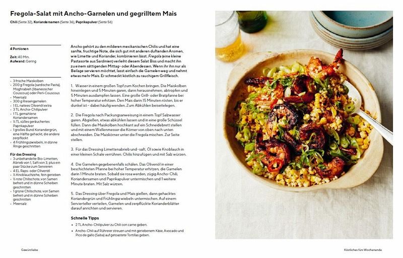 Esther Clark und Rachel Walker rollen den Aromahelden in »Gewürzliebe« den Teppich aus. Brigitte »»Gewürzliebe« ist ein Buch, das die Scheu vorm kräftigen Abschmecken nimmt und Neugier auf die unendlichen Möglichkeiten macht, die - bisher vielleicht ungenutzt - in ihrer Gewürzlade stecken.« GUSTO "Eines der inhaltlich und kulinarisch besten Gewürz-Kochbücher der letzten Jahre." Kaisergranat »Wer Lust hat, mit aromatischen Gewürzen modern zu kochen, sollte "Gewürzliebe" von Esther Clark und Rachel Walker nicht verpassen. Neue Ideen versprechen Geschmacksexplosionen vom Feinsten.« Ludwigsburger Wochenblatt