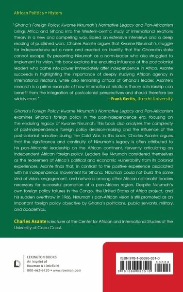 Ghana’s Foreign Policy: Kwame Nkrumah’s Normative Legacy and Pan-Africanism examines Ghana’s foreign policy in the post-independence era, focusing on the enduring legacy of Kwame Nkrumah. This book also analyzes the complexity of post-independence foreign policy decision making and the influence of the post-colonial narrative during the Cold War. In this study, Charles Asante argues that the significance and continuity of Nkrumah’s legacy is often attributed to his pan-Africanist leadership on the African continent, fervently articulating an independent African foreign policy. Leaders like Nkrumah, considered themselves as the redeemers of Africa’s political and economic vulnerability from its colonial experiences. Asante finds that, in contrast to the positive experience associated with his independence movement for Ghana, Nkrumah could not build the same kind of vision, engagement, and networks among other African nationalist leaders necessary for successful promotion of a Pan-African region. Despite Nkrumah’s own foreign policy failures in the Congo, the United States of Africa project, and his sudden overthrow in 1966, Nkrumah’s Pan-African vision is still promoted as an important foreign policy objective by Ghana’s politicians, public servants, military, and academics.