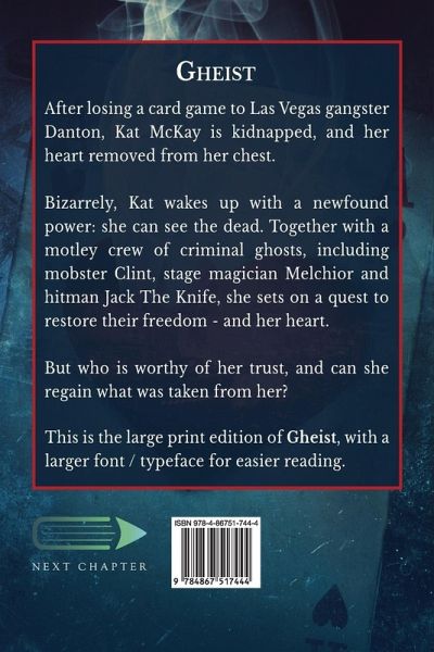 After losing a card game to Las Vegas gangster Danton, Kat McKay is kidnapped, and her heart removed from her chest. Bizarrely, Kat wakes up with a newfound power: she can see the dead. Together with a motley crew of criminal ghosts, including mobster Clint, stage magician Melchior and hitman Jack The Knife, she sets on a quest to restore their freedom - and her heart. But who is worthy of her trust, and can she regain what was taken from her? This is the large print edition of Gheist, with a larger font / typeface for easier reading.
