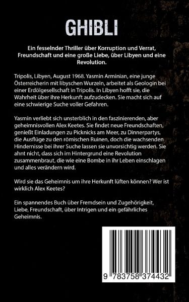 Tripolis, Libyen, August 1968. Yasmin Arminian, eine junge Österreicherin mit libyschen Wurzeln, arbeitet als Geologin bei einer Erdölgesellschaft in Tripolis. In Libyen hofft sie die Wahrheit über ihre Herkunft aufzudecken. Sie macht sich auf eine schwierige Suche voller Gefahren. Yasmin verliebt sich unsterblich in den faszinierenden, aber geheimnisvollen Alex Keetes. Sie findet neue Freundschaften, genießt Einladungen zu Picknicks am Meer, zu Dinnerpartys, die Ausflüge zu den römischen Ruinen, doch die wachsenden Hindernisse bei ihrer Suche lassen sie unvorsichtig werden. Sie ahnt nicht, dass sich im Hintergrund eine Revolution zusammenbraut, die wie eine Bombe in ihr Leben einschlagen und alles verändern wird.Wird sie das Geheimnis um ihre Herkunft lüften können? Wer ist wirklich Alex Keetes?Ein spannendes Buch über Fremdsein und Zugehörigkeit, Liebe, Freundschaft, über Intrigen und ein gefährliches Geheimnis.
