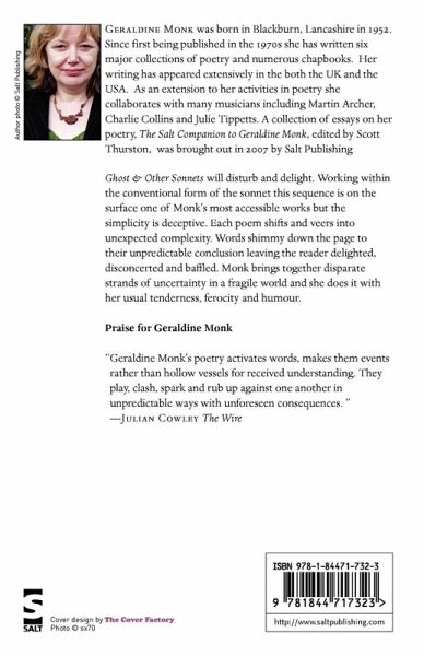 Ghost & Other Sonnets will disturb and delight. Working within the conventional form of the sonnet this sequence is on the surface one of Monk's most accessible works but the simplicity is deceptive. Each poem shifts and veers into unexpected complexity. Words shimmy down the page to their unpredictable conclusion leaving the reader delighted, disconcerted and baffled. Monk brings together disparate strands of uncertainty in a fragile world and she does it with her usual tenderness, ferocity and humour.