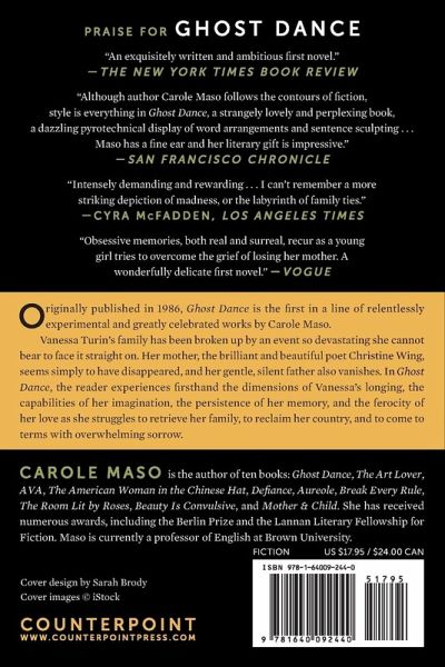 Originally published in 1986, Ghost Dance is the first in a line of relentlessly experimental and highly esteemed works by Maso. In her elegy for a family broken apart and for a country wounded by injustice and corporate greed, Maso skillfully draws parallels between the personal tragedy and the larger tragedies unfolding in the country.