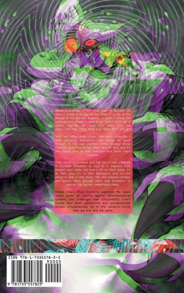 Reese is a drifter in the small town of Dundolk. He doesn't know what day of the week it is. All of the energy in his delicate anatomy is spent crafting the underground virtual puppet show, SKELEVENTURE. It seems nothing can steal him away from his work-until the coffee shop boy, Jalen, flirts with him. After the coffee shop closes, Jalen edits video for a local wrestling promotion. Like Reese, he loses himself in his own colorful, niche fantasy world. Physical attraction brings them face to face, but it's the shared love of their medium that binds them together. Their romance is sweet and hot, but a new presence in Dundolk threatens to sour it. A monster from Reese's past stalks the lovers: it's on their dates, it's at their jobs, it's in their bedrooms, and it's not afraid to spill a little blood. The line between fantasy and reality blurs around them and threatens to expose the secrets sweethearts keep. Millard Crow's "Ghost Economy" examines the space where queer art clashes against heteronormative systems, and challenges their compatibility. Crow's heroes face down paranormal and socioeconomic threats simultaneously, for in this romantic-horror, they are one and the same.