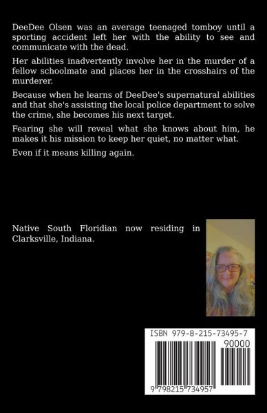 Diedre "DeeDee" Olsen was an average fourteen-year-old tomboy until she suffered a harrowing accident while playing summer softball. The head trauma she sustained leads to unimaginable consequences that flip her ordinary world upside down. DeeDee's no longer your typical, ordinary teen. Her head injury left her with the ability to see and communicate with the dead. Most of the spirits simply request her assistance by asking her to deliver messages of hope to grieving loved ones they left behind. Others have ulterior motives, like bringing their killers to justice. After a popular high school senior goes missing on Homecoming night, DeeDee inadvertently gets involved in the investigation when the girl's spirit appears to her with a special request and reveals information about her murder that no one else knows. Except for the killer. When he learns about DeeDee's supernatural abilities, and that she's assisting the local police department to solve the crime, she becomes his next target. Determined to prevent her from revealing what she knows about him, he makes it his mission to keep her quiet. Even if it means killing again.