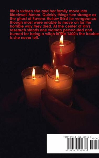 Rin is sixteen she and her family move into Blackwell Manor. Quickly things turn strange as the ghost of Ravens Hollow thirst for vengeance though most were unable to move on for the horrible way they died. At the center of Rin's research stands one woman persecuted and burned for being a witch in the 1600's the trouble is she never left.
