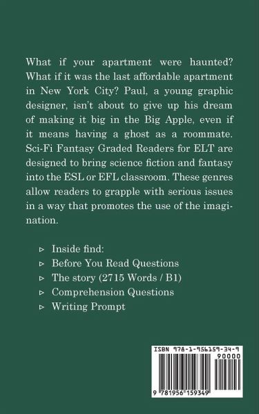 What if your apartment were haunted? What if it was an affordable apartment in New York City? Paul, a young graphic designer, isn't about to give up his dream of making it big in the Big Apple, even if it means making peace with a ghost. Sci-Fi Fantasy Graded Readers for ELT are designed to bring science fiction and fantasy into the ESL or EFL classroom. These genres allow readers to grapple with serious issues in a way that promotes the use of the imagination. Inside find: Before You Read Questions The story (2715 Words / B1) Comprehension Questions Writing Prompt