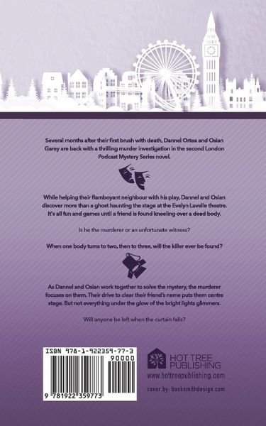 Several months after their first brush with death, Dannel Ortea and Osian Garey are back with a thrilling murder investigation in the second London Podcast Mystery Series novel. While helping their flamboyant neighbour with his play, Dannel and Osian discover more than a ghost haunting the stage at the Evelyn Lavelle theatre. It's all fun and games until a friend is found kneeling over a dead body. Is he the murderer or an unfortunate witness? When one body turns to two, then to three, will the killer ever be found? As Dannel and Osian work together to solve the mystery, the murderer focuses on them. Their drive to clear their friend's name puts them centre stage. But not everything under the glow of the bright lights glimmers. Will anyone be left when the curtain falls?