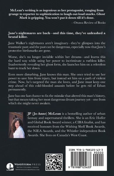Jane's nightmares are back-and this time, they've unleashed a brutal killer. Jane Walker's nightmares aren't imaginary-they're glimpses into the traumatic past; and the past can be dangerous, especially now that Jane's protective birthmarks are gone. Worse, she's no longer invisible within her dreams-and learns this the hard way while using her power to incriminate a ruthless killer. Inadvertently revealing her ghost form, she launches him on a relentless hunt to track her down. Even more disturbing, Jane knows this man. She once tried to use her power to save him from injury, but instead set him on a path of violent crime. Now, he's targeted the man she loves, and Jane must keep one step ahead of this cold-blooded assassin before he gets rid of Ethan permanently. Jane has one last chance to fix the mistake that altered this man's history, but that means taking her most dangerous dream journey yet-one from which she might never awaken. Ghost Mark is the second installment of the Dark Dreams Series by JP McLean, an author whose writing the Ottawa Review of Books calls "relentless and original."