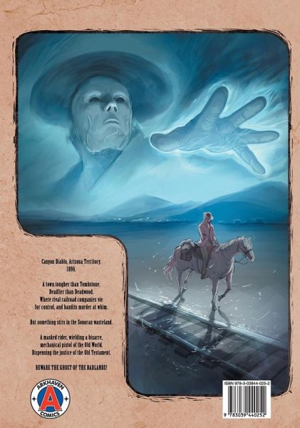 Arizona Territory, May 1896 Canyon Diablo is a reascendant Gomorrah. With rail bridge construction halted by hellfire and tragedy, and railroad companies warring with local land owners to complete it, the town becomes an open boil on the Arizona Desert. Gamblers proliferate. Prostitutes ply their trade. Brigands roam on the roadways, waylaying the innocent for an unknown purpose. But the bandits are not alone. Something stirs in the Painted Desert. Someone systematically exterminates coach robbers and murderers. Dealing out a deadly reckoning to all who assail the weak. Gunfight after gunfight. Coffin after coffin. Legend soon grows of this phantom of the high desert. A lone pistolier dispensing God's judgment. A one-man vendetta ride, wielding a strange mechanical weapon of the Old World. Baptizing the heathen in hails of gunfire. Eventually, folk find a name for this masked missionary of death... The Ghost of the Badlands