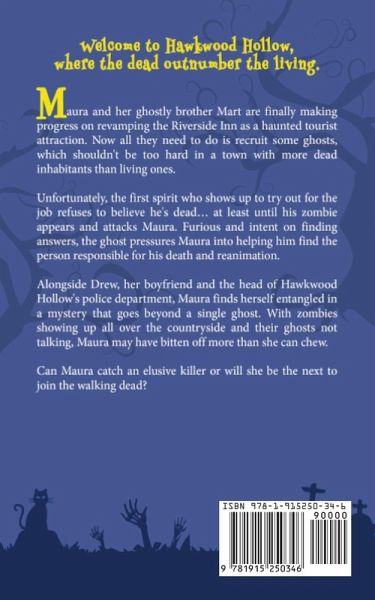 Welcome to Hawkwood Hollow, where the dead outnumber the living. Maura and her ghostly brother Mart are finally making progress on revamping the Riverside Inn as a haunted tourist attraction. Now all they need to do is recruit some ghosts, which shouldn't be too hard in a town with more dead inhabitants than living ones. Unfortunately, the first spirit who shows up to try out for the job refuses to believe he's dead... at least until his zombie appears and attacks Maura. Furious and intent on finding answers, the ghost pressures Maura into helping him find the person responsible for his death and reanimation. Alongside Drew, her boyfriend and the head of Hawkwood Hollow's police department, Maura finds herself entangled in a mystery that goes beyond a single ghost. With zombies showing up all over the countryside and their ghosts not talking, Maura may have bitten off more than she can chew. Can Maura catch an elusive killer or will she be the next to join the walking dead?