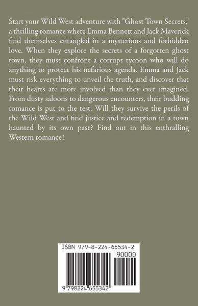 Start your Wild West adventure with "Ghost Town Secrets," a thrilling romance where Emma Bennett and Jack Maverick find themselves entangled in a mysterious and forbidden love. When they explore the secrets of a forgotten ghost town, they must confront a corrupt tycoon who will do anything to protect his nefarious agenda. Emma and Jack must risk everything to unveil the truth, and discover that their hearts are more involved than they ever imagined. From dusty saloons to dangerous encounters, their budding romance is put to the test. Will they survive the perils of the Wild West and find justice and redemption in a town haunted by its own past? Find out in this enthralling Western romance!