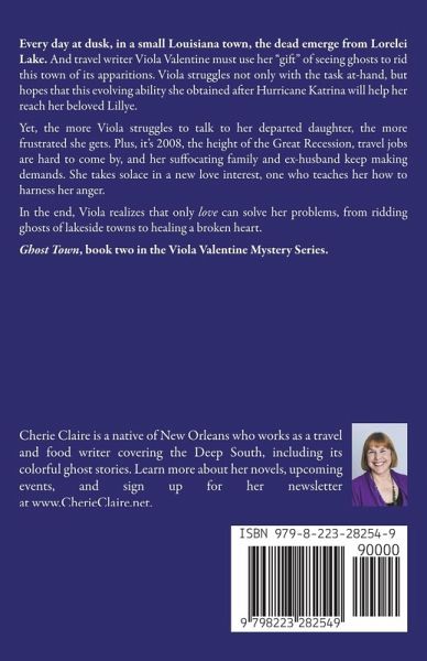 Every day at dusk, in a small Louisiana town, the dead emerge from Lorelei Lake. And travel writer Viola Valentine must use her "gift" of seeing ghosts to rid this town of its apparitions. Viola struggles not only with the task at-hand, but hopes that this evolving ability she obtained after Hurricane Katrina will help her reach her beloved Lillye. Yet, the more Viola struggles to talk to her departed daughter, the more frustrated she gets. Plus, it's 2008, the height of the Great Recession, travel jobs are hard to come by, and her suffocating family and ex-husband keep making demands. She takes solace in a new love interest, one who teaches her how to harness her anger. In the end, Viola realizes that only love can solve her problems, from ridding ghosts of lakeside towns to healing a broken heart. Ghost Town, book two in the Viola Valentine Mystery Series. BOOK DETAILS - Contemporary paranormal mystery - Book Two of the Viola Valentine Mystery Series - A full-length novel of approximately 80,000 words - R-rated content: Light sexuality - Set in Louisiana and the Deep South Books by Cherie Claire: The Viola Valentine Mystery Series A Ghost of a Chance Ghost Town Trace of a Ghost Ghost Trippin' Give Up the Ghost The Ghost is Clear (novella) Ghost Fever Ghost Lights The Cajun Embassy Ticket to Paradise Damn Yankees Gone Pecan The Cajun Series Emilie Rose Gabrielle Delphine A Cajun Dream The Letter Carnival Confessions: A Mardi Gras Novella Non-fiction titles by Cheré Coen: Magic's in the Bag: Creating Spellbinding Gris Gris Bags and Sachets with Jude Bradley Exploring Cajun Country: A Tour of Historic Acadiana Haunted Lafayette, Louisiana Forest Hill, Louisiana: A Bloom Town History