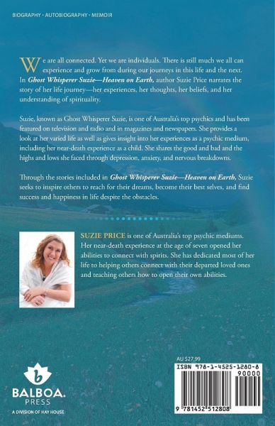 We are all connected. Yet we are individuals. There is still much we all can experience and grow from during our journeys in this life and the next. In Ghost Whisperer Suzie-Heaven on Earth, author Suzie Price narrates the story of her life journey-her experiences, her thoughts, her beliefs, and her understanding of spirituality. Price, known as Ghost Whisperer Suzie, is one of Australia's top psychics and has been featured on television and radio and in magazines and newspapers. She provides a look at her varied life as well as gives insight into her experiences as a physic medium, including her near-death experience as a child. She shares the good and bad and the highs and lows she faced through depression, anxiety, and nervous breakdowns. Through the stories included in Ghost Whisperer Suzie-Heaven on Earth, Price seeks to inspire others to reach for their dreams, become their best selves, and find success and happiness in life despite the obstacles.