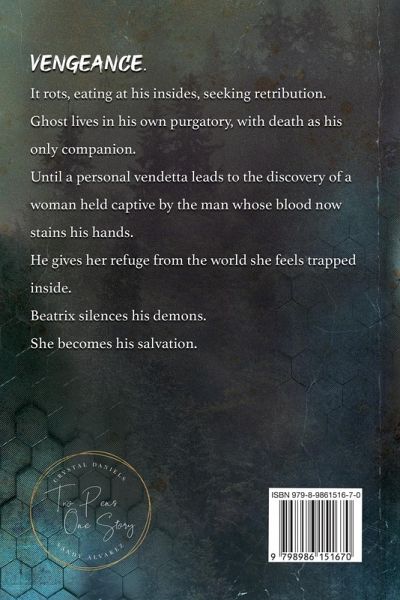 Vengeance. It rots, eating at his insides, seeking retribution. Ghost lives in his own purgatory, with death as his only companion. Until a personal vendetta leads to the discovery of a woman held captive by the man whose blood now stains his hands. He gives her refuge from the world she feels trapped inside. Beatrix silences his demons. She becomes his salvation.