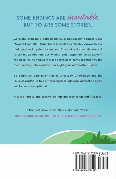 Cora Matthews, the principal's gloomy goth daughter, is not exactly popular Duke Meyer's type. Still, Duke finds himself inexplicably drawn to her dark eyes and mysterious manner. She makes it clear she doesn't return his admiration, but when a burst appendix lands Duke in the hospital, he and Cora will be forced to come together by the most unlikely intermediary: her eight-year-old brother, Jaime. Duke learns Jaime has brain cancer and little chance of long-term survival. He admires the kid's plucky positivity and wild imagination and offers to write a story about Jaime's make-believe superheroes. So begins an epic tale-that of Ghostboy, Chameleon and the Duke of Graffiti-and a deep friendship between Duke and Jaime. Despite their outward differences, Cora and Duke bond over their affection for Jaime, but unintended betrayal and Jaime's advancing disease threaten to derail their blossoming romance before it can truly take root. Ghostboy, Chameleon & the Duke of Graffiti is a gorgeous debut novel that will resonate with the thoughtful fans of John Green's blockbuster The Fault in Our Stars.
