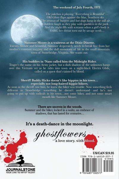 The weekend of July Fourth, 1971 The jukebox is playing "Everything is Beautiful"...Old Glory flaps against the blue, Southern sky...The aromas of burgers and hot dogs hang in the still air...Children laugh as they play with sparklers in the park...And the night fills with screams when a girl's body is found, her throat torn out by savage teeth... Summer Moore is a waitress at the Dixie Dinette.Twenty, blonde and beautiful, Summer desperately needs to break free from her mother's constant nagging and the dull monotony of life in the small mountain town of Stonebridge, Virginia. She wants out. His buddies in 'Nam called him the Midnight Rider.Trager's the name on his Army jacket, but a dark shadow of the unknown hangs over this Vietnam vet as he rides into town on a night-black Electra Glide, called on a quest that's tainted by blood. Sheriff Buddy Hicks doesn't like hippies in his town...especially not long-haired hippie bikers.As soon as the sheriff saw him, he knew the biker was trouble. Now something feels different in Stonebridge-something he doesn't understand-and he's not going to put up with radicals in his town...not some biker, and not some smart mouth like Summer Moore. There are secrets in the woods.Ben Castle, who summoned the biker with a note scrawled in blood...Louise Moore, who refuses to lose control of her daughter like she lost her husband...Summer and the biker, locked in a dance, an embrace of shadows that has lasted for centuries...And even the mountains themselves hold secrets... It's a rock and roll Grand Guignol.It's a death-dance in the moonlight.ghostflowers It's a love story. With blood.