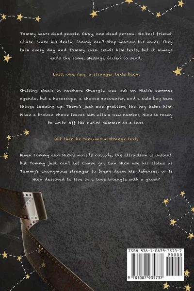 Tommy hears dead people. Okay, one dead person. His best friend, Chase. Since his death, Tommy can't stop hearing his voice. They talk every day and Tommy even sends him texts, but it always ends the same. Message failed to send. Until one day, a stranger texts back. Getting stuck in nowhere Georgia was not on Nick's summer agenda, but a horoscope, a chance encounter, and a cute boy has things looking up. There's just one problem, the boy hates him. When a broken phone leaves him with a new number, Nick is ready to write off the entire summer as a loss. But then he receives a strange text. When Tommy and Nick's worlds collide, the attraction is instant, but Tommy just can't let Chase go. Can Nick use his status as Tommy's anonymous stranger to break down his defenses or is Nick destined to live in a love triangle with a ghost?