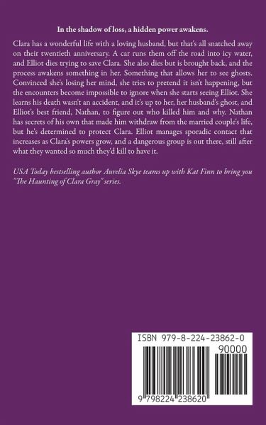 In the shadow of loss, a hidden power awakens. Clara has a wonderful life with a loving husband, but that's all snatched away on their twentieth anniversary. A car runs them off the road into icy water, and Elliot dies trying to save Clara. She also dies but is brought back, and the process awakens something in her. Something that allows her to see ghosts. Convinced she's losing her mind, she tries to pretend it isn't happening, but the encounters become impossible to ignore when she starts seeing Elliot. She learns his death wasn't an accident, and it's up to her, her husband's ghost, and Elliot's best friend, Nathan, to figure out who killed him and why. Nathan has secrets of his own that made him withdraw from the married couple's life, but he's determined to protect Clara. Elliot manages sporadic contact that increases as Clara's powers grow, and a dangerous group is out there, still after what they wanted so much they'd kill to have it. USA Today bestselling author Aurelia Skye teams up with Kat Finn to bring you "The Haunting of Clara Gray" series.