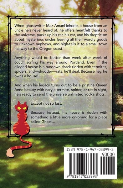 When ghostwriter Maz Amani inherits a house from an uncle he's never heard of, he offers heartfelt thanks to the universe, packs up his car, his cat, and his skepticism about mysterious uncles leaving all their worldly goods to unknown nephews, and high-tails it to a small town halfway to the Oregon coast. Anything would be better than week after week of couch surfing his way around Portland. Even if the alleged house is a rundown shack ridden with termites, spiders, and-shudder-rats, he'll deal. Because hey, he owns a house! And when his legacy turns out to be a pristine Queen Anne beauty with nary a termite, spider, or rat in sight, he's ready to stand the universe unlimited vodka shots. Except not so fast. Because instead, his house is ridden with something a little more on-brand for a place called Ghost...