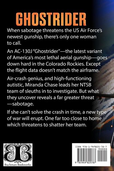 When sabotage threatens the US Air Force's newest gunship, there's only one woman to call. An AC-130J "Ghostrider"-the latest variant of America's most lethal aerial gunship-goes down hard in the Colorado Rockies. Except the flight data doesn't match the airframe. Air-crash genius, and high-functioning autistic, Miranda Chase leads her NTSB team of sleuths in to investigate. But what they uncover reveals a far greater threat-sabotage. If she can't solve the crash in time, a new type of war will erupt. One far too close to home which threatens to shatter her team.
