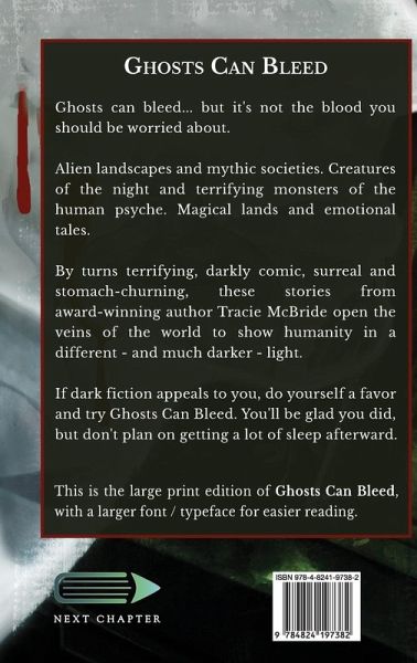 Ghosts can bleed... but it's not the blood you should be worried about. Alien landscapes and mythic societies. Creatures of the night and terrifying monsters of the human psyche. Magical lands and emotional tales. By turns terrifying, darkly comic, surreal and stomach-churning, these stories from award-winning author Tracie McBride open the veins of the world to show humanity in a different - and much darker - light. If dark fiction appeals to you, do yourself a favor and try Ghosts Can Bleed. You'll be glad you did, but don't plan on getting a lot of sleep afterward. This is the large print edition of Ghosts Can Bleed, with a larger font / typeface for easier reading.