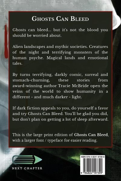 Ghosts can bleed... but it's not the blood you should be worried about. Alien landscapes and mythic societies. Creatures of the night and terrifying monsters of the human psyche. Magical lands and emotional tales. By turns terrifying, darkly comic, surreal and stomach-churning, these stories from award-winning author Tracie McBride open the veins of the world to show humanity in a different - and much darker - light. If dark fiction appeals to you, do yourself a favor and try Ghosts Can Bleed. You'll be glad you did, but don't plan on getting a lot of sleep afterward. This is the large print edition of Ghosts Can Bleed, with a larger font / typeface for easier reading.