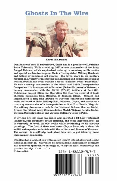 Ghosts In the Wire is a vivid first-person account of what many veterans experienced upon their return from the war in Vietnam. It is a sequel to Rast's first book--Don's Nam, which quintessentially depicts his tour of duty in Vietnam during 1969 and 70 with the Orient Express. Rast eloquently and passionately takes the reader on a gut-wrenching roller coaster ride of flash-backs, horror, courage, and outlandish humor that is presented unlike the headlines and TV news could ever hope to depict. It is essential, poignant reading for those veterans who were in 'Nam and cannot forget, and also for those who were not there, but strive to understand the electrifying intensity, and often surrealistic events that war and its aftermath creates. The events and characters jump to life from his old muddy diary, which was locked in a footlocker for twenty-eight years, and leave the reader crying, laughing, or just plainly boiling with rage as this dramatic story unfolds in a manner that is truly spellbinding.