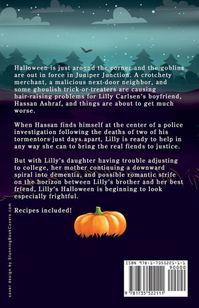 Halloween is just around the corner and the goblins are out in force in Juniper Junction. A crotchety merchant, a malicious next-door neighbor, and some ghoulish trick-or-treaters are causing hair-raising problems for Lilly Carlsen's boyfriend, Hassan Ashraf, and things are about to get much worse. When Hassan finds himself at the center of a police investigation following the deaths of two of his tormentors just days apart, Lilly is ready to help in any way she can to bring the real fiends to justice. But with Lilly's daughter having trouble adjusting to college, her mother continuing a downward spiral into dementia, and possible romantic strife on the horizon between Lilly's brother and her best friend, Lilly's Halloween is beginning to look especially frightful.