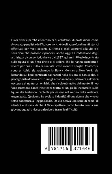 Gialli diversi perché risentono di quarant'anni di professione come Avvocato penalista dell'Autore nonché degli approfondimenti storici effettuati per molti decenni. Si tratta di gialli aderenti alla vita e a situazioni che possono riproporsi anche oggi. La redenzione degli altri riguarda un periodo che va dal 1917 agli anni '90 ed è incentrata sulla figura di un finto prete e di coloro che hanno costretto a vivere per quasi tutta la sua vita sotto mentite spoglie. Costoro si sono arricchiti sia rapinando la Banca Morgan a New York, sia lucrando sui beni confiscati dai nazisti nella Risiera di San Sabba. Il protagonista dovrà ricostruire gli accadimenti e si ritroverà a doversi occupare di numerosi omicidi, che risolverà molto abilmente. Il neo vice-ispettore Sante Nocito: si tratta di un giallo incentrato sulla figura delle testimonianze protetti per essere nel mirino della malavita organizzata. Qualcuno ha svelato l'identità di una donna che viveva sotto copertura a Reggio Emilia. Da ciò deriva una serie di cambi di identità e di omicidio che il vice-ispettore Santo Nocito con la sua giovane squadra riesce a risolvere tra mille difficoltà.