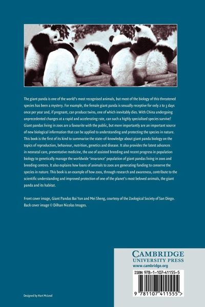 The giant panda is one of the world's most recognized animals. With the environment undergoing unprecedented change at a rapid and accelerating rate, can such a highly specialized species survive? This 2006 book summarizes panda biology and encompasses topics such as reproduction, behaviour, nutrition, genetics and veterinary medicine. It also provides information on veterinary management, advances in neonatal care, disease detection and prevention and the use of 'assisted breeding' to promote reproduction and preserve genetic diversity, as the females are sexually receptive for only 3 days…mehr
