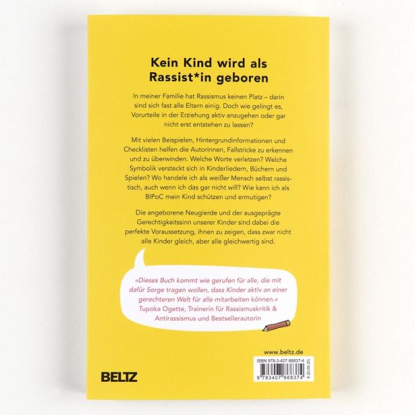 »Wehret den Anfängen, heißt es auch in der Rassismuskritik. Es braucht aber Erwachsene, die Kinder auf diesem Weg begleiten. Für sie kommt dieses Buch wie gerufen. Es ist ein Muss für alle, die mit Kindern zu tun haben und mit dafür Sorge tragen wollen, dass ihre Kinder aktiv an einer gerechteren Welt für alle mitarbeiten können.« Tupoka Ogette, Trainerin für Rassismuskritik & Antirassismus und Bestsellerautorin »Wenn man einen Erziehungsratgeber unbedingt lesen sollte, dann diesen.« Carla Heher, Missy Magazin, 5/2021 »Ein Ratgeber für Erwachsene darüber, wie das Thema Rassismus aktiv bekämpft werden kann und der klar macht, dass schon im Kinderzimmer einiges verändert werden muss.« Julian Hübecker, sachbuch-couch.de, August 2021 »In ihrer Kindheit haben die Gründerinnen von Tebalou keine Puppen und Kinderbuchheldinnen gefunden, mit denen sie sich identifizieren konnten. Alle waren weiß, blond und aus Familien mit zwei Eltern. Heute helfen sie, mehr Vielfalt in deutsche Kinderzimmer zu bringen.« Judith Poznan, Berliner Zeitung, 18.9.2020 »[Das Buch] eignet sich wirklich für Eltern, Erziehungspersonen, aber auch jeden anderen, weil es einfach auf wahnsinnig verständnisvolle und auch übersichtliche Art und Weise [...] für einen gerechteren und aufgeklärteren Umgang miteinander spricht und einem das zugänglich macht.« Helena Singer, Lovelybooks, 12.8.2021 »Das Buch ist eine Aufforderung, sich und seinen Alltag kritisch zu betrachten, macht Mut für Empathie und für Fehler, die passieren werden. Ein tolles Buch, um mit Kindern ins Gespräch zu kommen!« Lola Mercedes Wittstamm, erziehungskunst.de, 1.3.2023