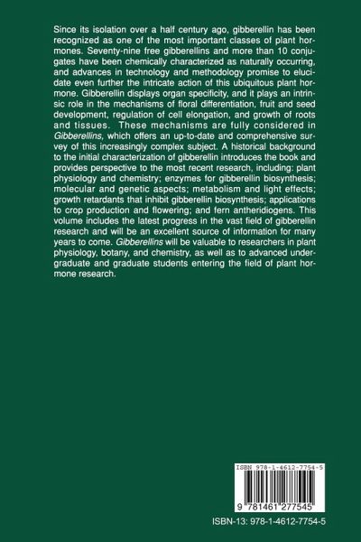 1. Historical Aspects of Gibberellins.- I. Organ Specificity and Dwarfism.- 2. Organ-Specific Gibberellins in Rice: Roles and Biosynthesis.- 3. Gibberellin Metabolism in Maize: Tissue Specificity.- 4. Gibberellins from the Tassel, Cob, 'Seed,' Silk, and Pollen of Maize.- 5. Gibberellin Mutants in Pisum and Lathyrus.- II. Biosynthetic Enzymes.- 6. The Relationship of Different Gibberellin Biosynthetic Pathways in Cucurbita maxima Endosperm and Embryos and the Purification of a C-20 Oxidase from the Endosperm.- 7. Enzymatic 3?-Hydroxylation of Gibberellins A20 and A5.- 8. Partial Characterization of the Gibberellin 3?-Hydroxylase from Immature Seeds of Phaseolus vulgaris.- 9. Gibberellin Metabolism in Cell-Free Preparations from Phaseolus coccineus.- 10. Gibberellin Biosynthetic Enzymes and the Regulation of Gibberellin Concentration.- III. Molecular Aspects.- 11. Gibberellin A3-Regulated ?-Amylase Synthesis and Calcium Transport in the Endoplasmic Reticulum of Barley Aleurone Cells.- 12. Rice ?-Amylase and Gibberellin Action-A Personal View.- 13. Gibberellin Production and Action During Germination of Wheat.- 14. Probing Gibberellin Receptors in the Avena fatua Aleurone.- 15. A Minireview on the Immunoassay for Gibberellins.- IV. Physiology and Metabolism.- 16. Physiology of Gibberellins in Relation to Floral Initiation and Early Floral Differentiation.- 17. Role of Endogenous Gibberellins During Fruit and Seed Development.- 18. Correlations Between Apparent Rates of ent-Kaurene Biosynthesis and Parameters of Growth and Development in Pisum sativum.- 19. Gibberellins and the Regulation of Shoot Elongation in Woody Plants.- 20. The Gibberellin Control of Cell Elongation.- 21. The role of Gibberellin in the Formation of Onion Bulbs.- 22. Gibberellin Requirementfor the Normal Growth of Roots.- 23. Effects of Gibberellin A3 on Growth and Tropane Alkaloid Synthesis in Ri Transformed Plants of Datura innoxia.- 24. Biochemical and Physiological Aspects of Gibberellin Conjugation.- 25. Metabolism of [3H]Gibberellin A4 and [2H]Gibberellin A4 in Cell Suspension Cultures of Rice, Orygza sativa cv. Nihonbare.- V. Light Effects.- 26. Stem Growth and Gibberellin Metabolism in Spinach in Relation to Photoperiod.- 27. Phytochrome Mediation of Gibberellin Metabolism and Epicotyl Elongation in Cowpea, Vigna sinensis L..- 28. Role of Gibberellins in Phytochrome-Mediated Lettuce Seed Germination.- VI. Growth Retardants.- 29. Inhibitors of Gibberellin Biosynthesis: Applications in Agriculture and Horticulture.- 30. Studies on the Action of the Plant Growth Regulators BX-112, DOCHC, and DOCHC-Et.- 31. Studies on Sites of Action of the Plant Growth Retardant 4?- Chloro-2?-(?-Hydroxybenzyl)isonicotinanilide (Inabenfide) in Gibberellin Biosynthesis.- 32. Effects of the Growth Retardant Uniconazole-P on Endogenous Levels of Hormones in Rice Plants.- 33. Inconsistency Between Growth and Endogenous Levels of Gibberellins, Brassinosteroids, and Sterols in Pisum sativum Treated with Uniconazole Antipodes.- VII. Applied Aspects.- 34. Gibberellin Increases Cropping Efficiency in Sour Cherry (Prunus cerasus L.).- 35. Prospects for Gibberellin Control of Vegetable Production in the Tropics.- 36. Gibberellin-Induced Flowering and Morphological Changes in Taro Plants.- VIII. Antheridiogens.- 37. Antheridiogens of Schizaeaceous Ferns: Structures, Biological Activities, and Biosynthesis.- 38. Antheridiogen, Gibberellin, and the Control of Sex Differentiation in Gametophytes of the Fern Lygodium japonicum.- 39. Synthetic Pathways to Fern Antheridiogensfrom Gibberellins.