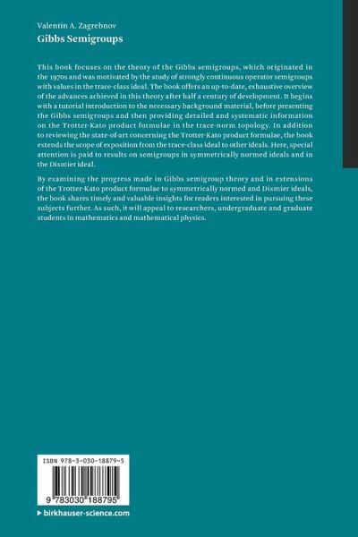 By examining the progress made in Gibbs semigroup theory and in extensions of the Trotter-Kato product formulae to symmetrically normed and Dixmier ideals, the book shares timely and valuable insights for readers interested in pursuing these subjects further. As such, it will appeal to researchers, undergraduate and graduate students in mathematics and mathematical physics.