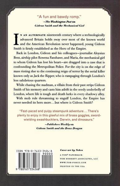 Gideon Smith and the Mask of the Ripper is the finale in David Barnett's riproaring steampunk adventures about a Britain that never was...but should have been. In an alternate nineteenth century where a technologically advanced Britain holds sway over most of the known world and the American Revolution never happened, young Gideon Smith is firmly established as the Hero of the Empire. Back in London, Gideon and his colleagues: journalist Aloysius Bent, airship pilot Rowena Fanshawe, and Maria, the mechanical girl to whom Gideon has lost his heart, are dragged into a case that is confounding the Metropolitan Police. For the city is on the edge of mass rioting due to the continuing reign of terror by the serial killer known only as Jack the Ripper, who is rampaging though London's less salubrious quarters. While chasing the madman, a villain from their past strips Gideon Smith of his memory and is cast adrift in the seedy underbelly of London, where life is tough and death lurks in every shadowy alley. With mob rule threatening to engulf London, the Empire has never needed its hero more...but where is Gideon Smith?