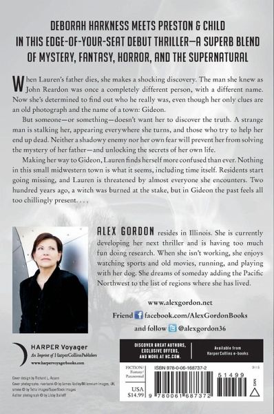 Deborah Harkness meets Preston & Child in this edge-of-your-seat debut thriller?a superb blend of mystery, fantasy, horror, and the supernatural When Lauren's father dies, she makes a shocking discovery. The man she knew as John Reardon was once a completely different person, with a different name. Now she's determined to find out who he really was, even though her only clues are an old photograph and the name of a town: Gideon. But someone?or something?doesn't want her to discover the truth. A strange man is stalking her, appearing everywhere she turns, and those who try to help her end up dead. Neither a shadowy enemy nor her own fear will prevent her from solving the mystery of her father?and unlocking the secrets of her own life. Making her way to Gideon, Lauren finds herself more confused than ever. Nothing in this small midwestern town is what it seems, including time itself. Residents start going missing, and Lauren is threatened by almost everyone she encounters. Two hundred years ago, a witch was burned at the stake, but in Gideon the past feels all too chillingly present. . . .
