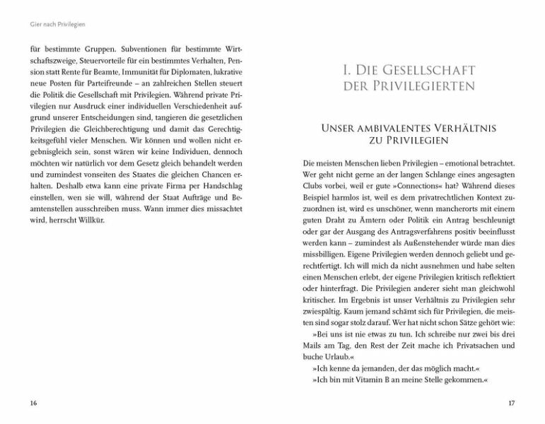 Fühlen Sie sich manchmal, als würden Sie in einer Gesellschaft leben, die vor Sonderrechten und Ungerechtigkeiten strotzt? Zahlen Sie am meisten drauf - und wissen es nicht einmal? Dann ist dieses Buch genau das richtige für Sie. "Gier nach Privilegien" enthüllt die erschreckende Wahrheit hinter dem undurchsichtigen Geflecht aus Privilegien, das unsere Gesellschaft durchzieht. Es deckt auf, warum Politiker, Beamte und sogar Sozialhilfeempfänger oft besser dastehen als der durchschnittliche Bürger - und welche versteckten Vorteile selbst die "Unprivilegierten" genießen. Dieses Buch ist kein…mehr