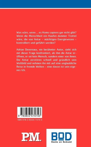 Was wäre, wenn ... es Homo sapiens gar nicht gibt? Wenn die Menschheit ein Haufen dummer Trottel wäre, die von Antar - mächtigen Energiewesen - kontrolliert und geführt werden? Adrian Devereaux, ein berühmter Autor, sieht sich mit dieser Frage konfrontiert, als ihm die Antar eröffnen, er sei kein Mensch, sondern einer von ihnen. Die Antar zerstören schnell und gründlich seinWeltbild und nehmen ihn mit auf eine unglaubliche Reise in fremde Welten - eine davon ist sein eigenes Ich.