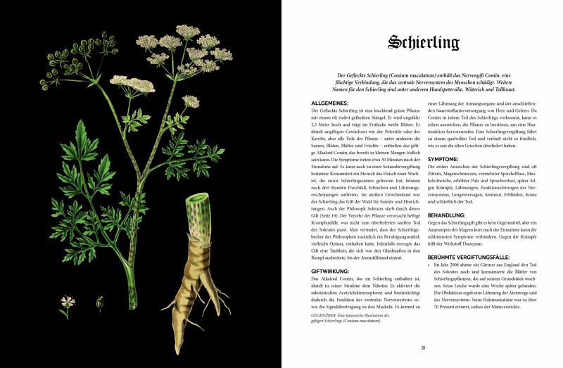 Der Giftmord ist so alt wie die Menschheit selbst. Im alten Rom griffen die Kaiser gern und häufig zu Gift, um ungeliebte Rivalen zu beseitigen. Zur Zeit der Renaissance meuchelte man Tafelgäste mit vergiftetem Wein. Und in der heutigen Zeit setzen finstere Gestalten beim Versuch, den perfekten Mord zu begehen, heimtückische Gifte ein, die fast unmöglich nachzuweisen sind. Diese Methoden sind das Ergebnis einer langen Reihe von Experimenten, denn die gleichen Substanzen, die Menschen töten oder krank machen können, wurden im Laufe der Geschichte auch als Rauschmittel, Aphrodisiaka und sogar als Lebenselixiere konsumiert. Denn wie jeder Hobby-Toxikologe weiß: Erst die Dosis macht das Gift.Diese Chronik dokumentiert die historisch bekanntesten Tode durch Gift. Sie erzählt die spannenden Geschichten der Mörder, Süchtigen und Opfer dieser geheimnisvollen Substanzen - von Kleopatra, den Borgias und Qin Shihuangdi bis zu den Geheimagenten und Terroristen der Gegenwart. Die Ursprünge, Wirkung und tödliche Kraft der häufigsten Gifte jeder historischen Epoche werden vorgestellt, zusammen mit den Methoden, mit denen machthungrige, gefährliche und verzweifelte Figuren der Geschichte diese Stoffe für ihre Zwecke missbrauchten.