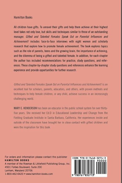 Chapter 1 Acknowledgements Chapter 2 Preface Chapter 3 Introduction Chapter 4 The Role of Parents Chapter 5 The Brain: A Complex and Remarkable Organ Chapter 6 Defining Gifted and Talented Chapter 7 Achievement Chapter 8 Females:A Story From the Past Chapter 9 The Dilemma of Gifted and Talented Females Chapter 10 Staging an Interview with Gifted and Talented Females Chapter 11 Gifted and Talented Females Speak Out! Chapter 12 Reading for Achievement Chapter 13 Discussion and Conclusion Chapter 14 Recommendations For Practice Chapter 15 Study Questions and Suggested Readings Chapter 16 Appendix Chapter 17 Bibliography Chapter 18 Index Chapter 19 About the Author