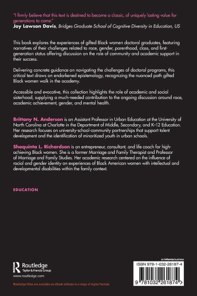 This book explores the experiences of gifted Black women doctoral graduates, featuring narratives of their challenges related to race, gender, parenthood, class and first-generation status, and offers discussion on the role of community and academic support in their success.