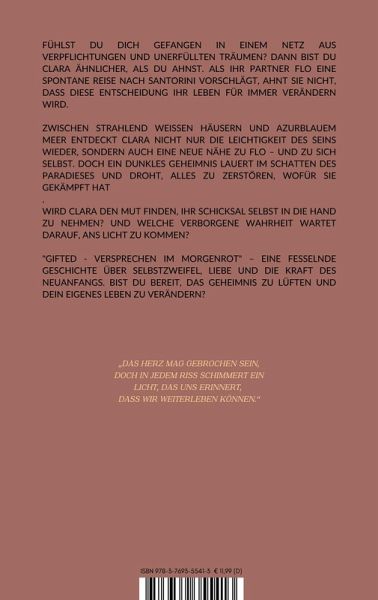 "Gifted - Versprechen im Morgenrot" ist der dritte Teil einer fesselnden Romanreihe von Stefan Radau. Im Mittelpunkt steht Clara Lewis, die Gründerin der Gifted-Stiftung, einer Organisation, die sich der Förderung hochbegabter Kinder widmet. Clara befindet sich an einem Wendepunkt ihres Lebens. Ihr einstiger Traum, ein Zufluchtsort für außergewöhnlich begabte Kinder zu schaffen, hat sich zu einem komplexen Unternehmen entwickelt, das sie zu überfordern droht. Zwischen endlosen Verpflichtungen, Sponsoren-Dinners und bürokratischen Hürden droht Clara, die Leidenschaft für ihre ursprüngliche Vision zu verlieren. Der Roman zeichnet ein vielschichtiges Bild einer Frau, die zwischen persönlichen Zweifeln und beruflichen Herausforderungen navigiert. Während Clara versucht, den Kern ihrer Mission wiederzufinden, entfaltet sich eine Geschichte über Mut, Selbstfindung und die Kraft, seinen Überzeugungen treu zu bleiben. "Versprechen im Morgenrot" verspricht eine emotionale Reise, die Themen wie Hochbegabung, gesellschaftliche Erwartungen und persönliche Erfüllung gekonnt miteinander verwebt. Es ist eine Erzählung über die Herausforderungen des Erfolgs und die Suche nach Authentizität in einer Welt voller Kompromisse. Radau's Roman bietet nicht nur Einblicke in die Welt der Hochbegabten, sondern erforscht auch universelle Themen wie Identität, Verantwortung und die Bedeutung von Gemeinschaft. Mit seiner tiefgründigen Charakterentwicklung und der Auseinandersetzung mit relevanten gesellschaftlichen Fragen verspricht "Gifted - Versprechen im Morgenrot" eine fesselnde Lektüre für alle, die sich für die Komplexität menschlicher Beziehungen und persönliches Wachstum interessieren.