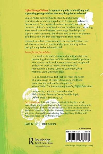 Gifted Young Children is a practical guide to identifying and supporting young children who may be gifted or talented. Louise Porter outlines how to identify and provide educationally for children aged up to 8 years with advanced development. She explains how teachers and parents can promote children's emotional and social adjustment, including ways to enhance self-esteem, encourage friendships and support their autonomy. She shows how parents can discuss giftedness with children and respond to their needs. Updated to reflect recent research, this second edition is a valuable resource for parents and anyone working with or caring for a gifted or talented child. Praise for the first edition: a wealth of creative ideas and practical advice for developing the talents of this under-served population. Her humour and candor, compassion and insight will endear her work to readers internationally.' Joan Franklin Smutny, Director, Center for Gifted, National-Louis University, USA a comprehensive text that will meet the needs of a wide range of readers from early childhood professionals and teachers to parents.' Wilma Vialle, The Australasian Journal of Gifted Education interesting, clear and comprehensive' Helen Wilson, Research Centre for Able Pupils, Oxford Brookes University,UK